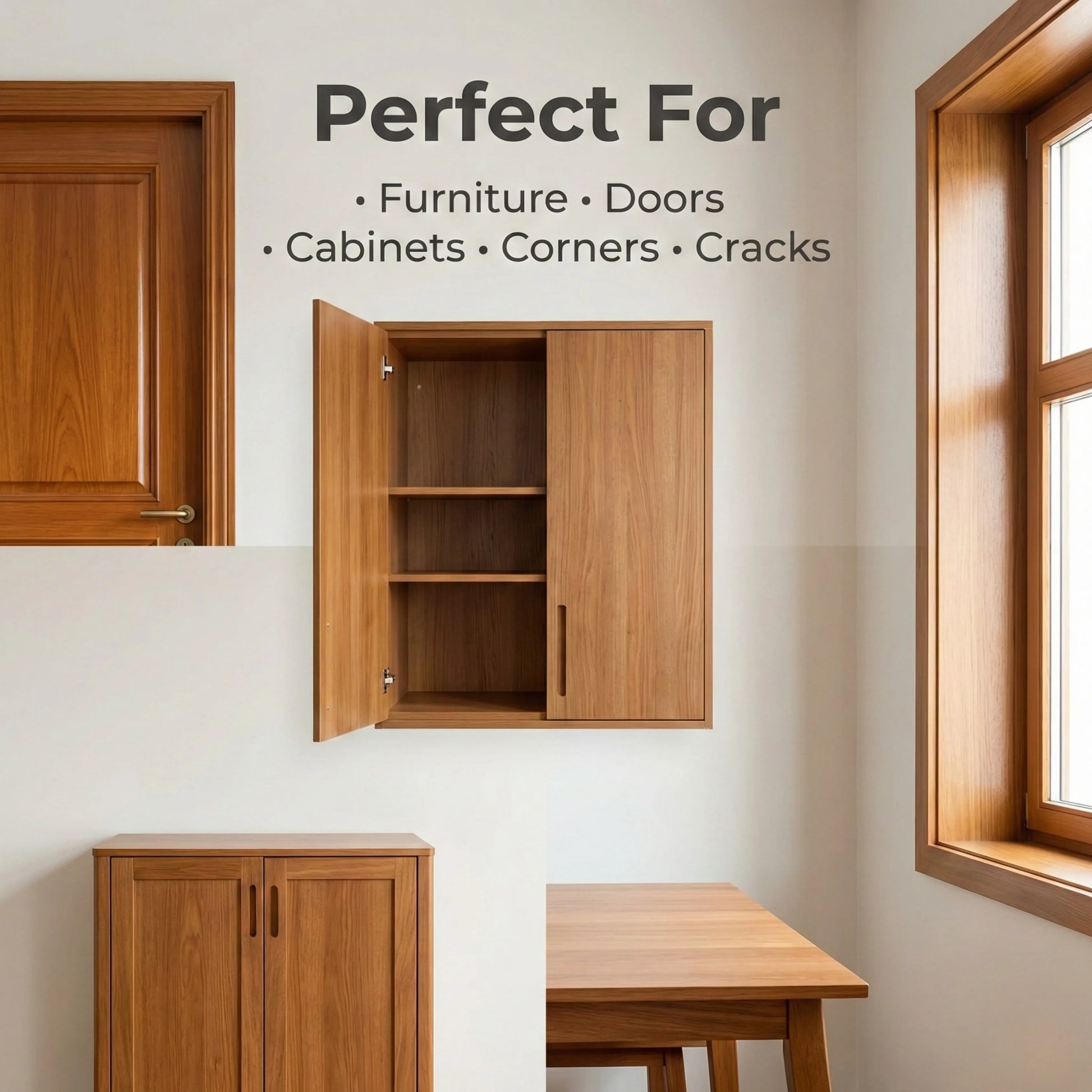 Protects wooden furniture, doors, and cabinets.